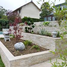 Amenagement Exterieur Avec Du Parement Pierre En 2020 Amenagement Paysager Devant Maison Amenagement Jardin Jardin En Pente