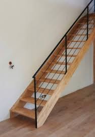 Escalier Sur Mesure Marches Et Contremarches Assemblees En Chene Aboute Avec Son Garde Corps Metallique Les Escaliers T Idees Escalier Escalier Bois Escalier