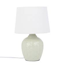 Lampara De Ceramica Verde Tallada Con Pantalla Blanca Bilbao Maisons Du Monde En 2020 Pantalla Blanca Lamparas De Ceramica Lampara