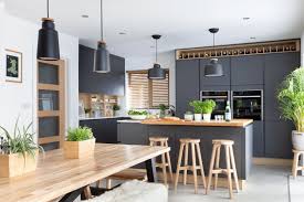Stunning Modern Handleless Kitchen Mixing Dark Grey And Wood Effect Cabinets Pictured H Cuisine Gris Idee Deco Cuisine Ouverte Cuisine Ouverte Salle A Manger