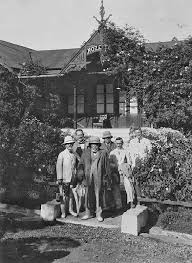 President Georges Clemenceau Met Paraplu Van Frankrijk Voor Het Sanatorium Te Tosari In Het Tenggergebergte 1920