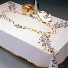 Chemin De Table A Broder Fleurs Monochrome Vervaco La Maison Du Canevas Et De La Broderie La Maison Du Canevas Chemin De Table Nappe De Table