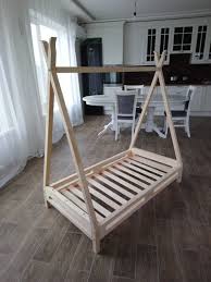 Bois Designs Enfant Lit Maison Montessori Scandinave Style Tipi Wood In 2020 Teepee Bed Diy Toddler Bed Kid Beds