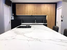 Cuisine Blanche Avec Meubles Haut Jusqu Au Plafond Hotte Integre Aux Meubles Et Ilot Servant De Plan De Travail Mobilier De Salon Cuisines Design Meuble Haut